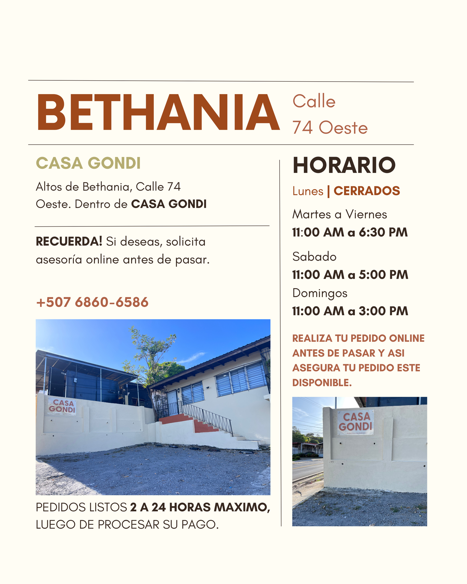 Encuentra todos nuestros productos en un punto céntrico de la ciudad de Panamá, Bethania Calle 74 Oeste dentro de la hermosa CASA GONDI.