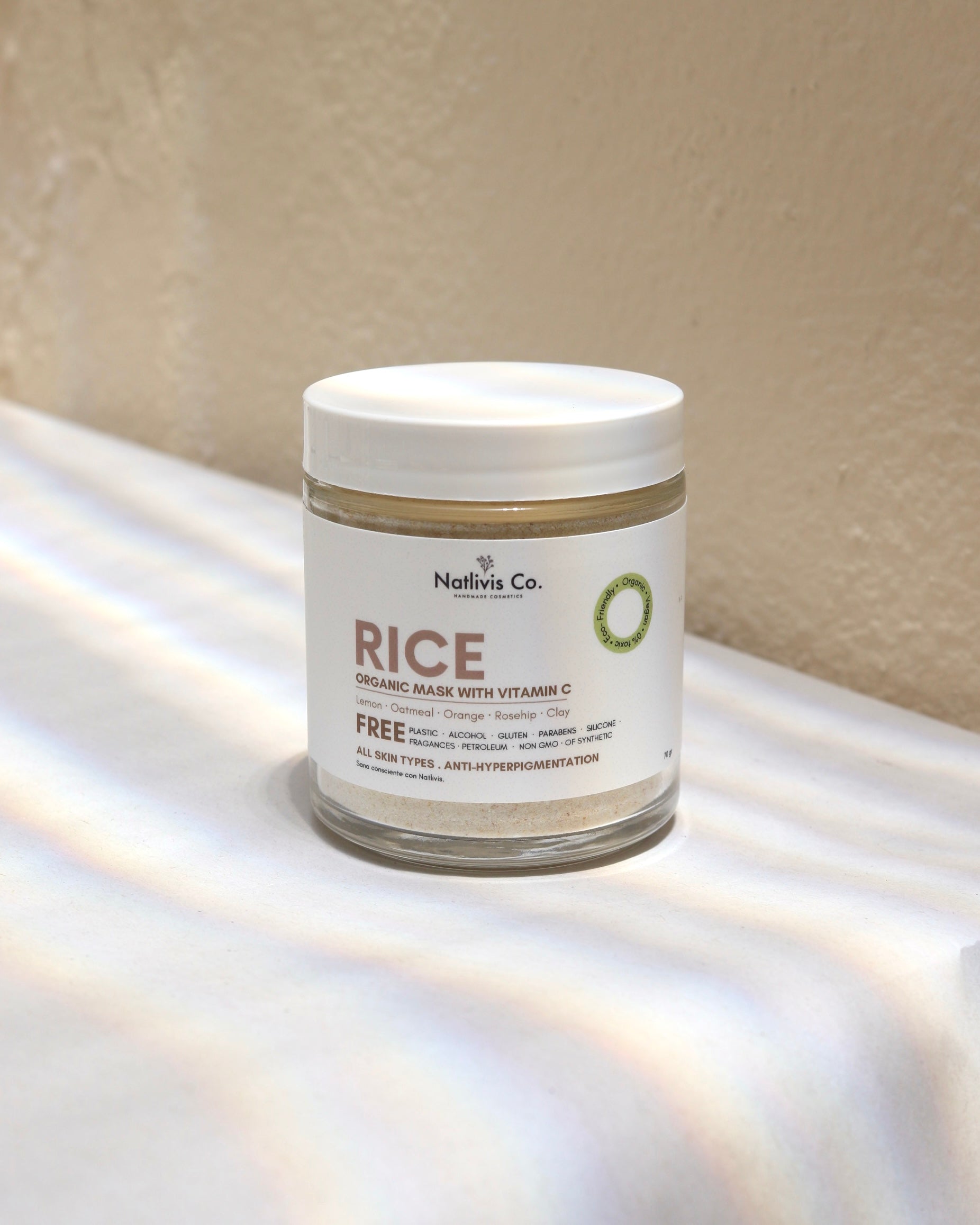 Ingredientes: Brown Rice flour (Rice flour and Rice bran), Organic Oat Fiber, Jojoba (Simmondsia chinensis), Vitamin E pure, Organic citrus sinensis, Citrus limon (Lemon).