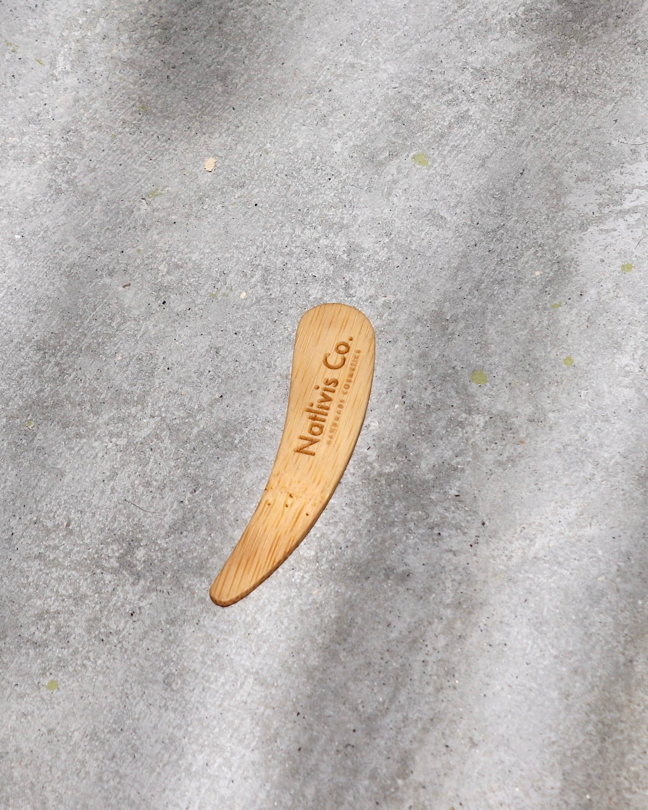 Hecha de bamboo natural, esta paleta está diseñada para sacar crema de tus envases sin necesidad de usar los dedos, evitando así la contaminación bacteriana.