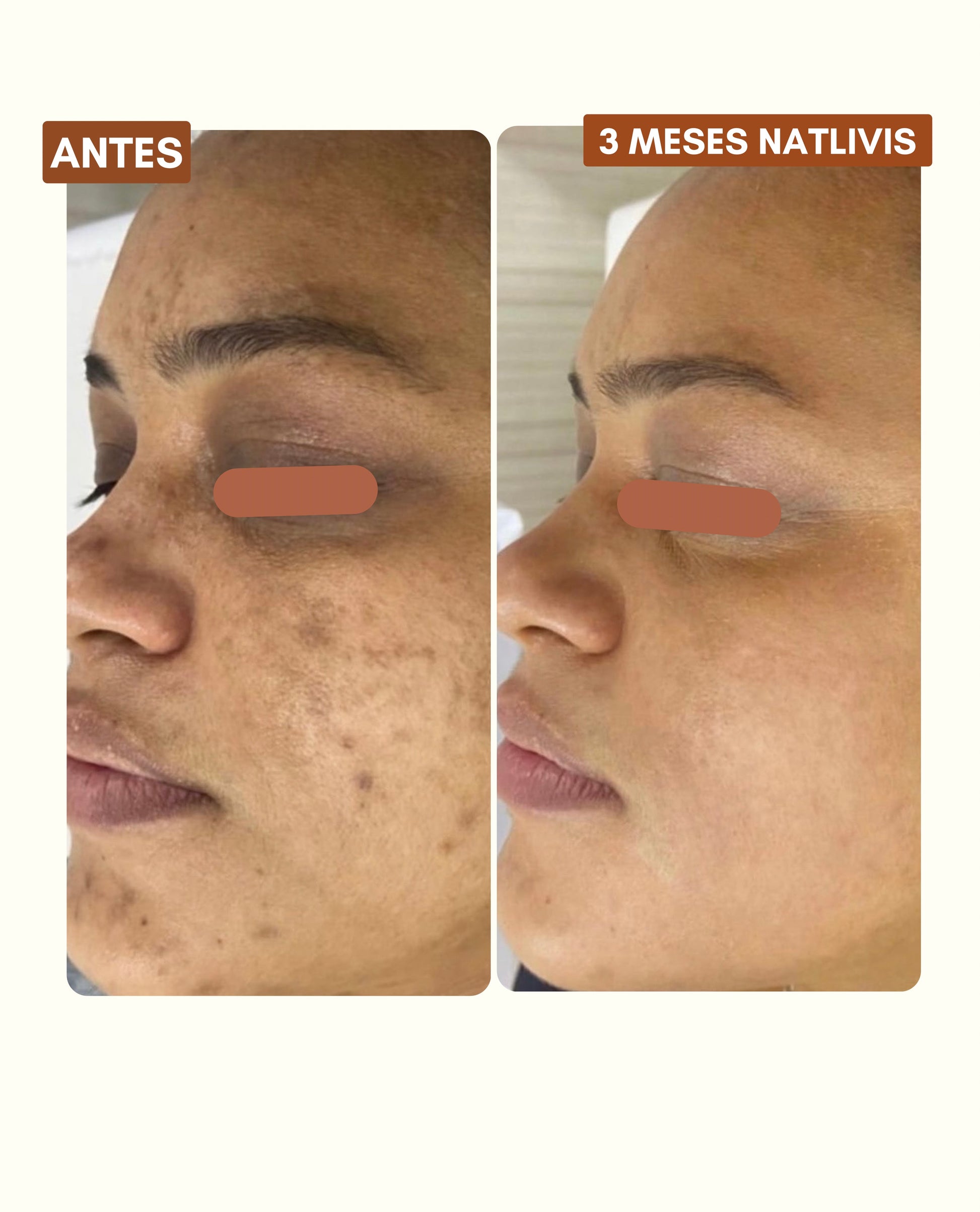 ¡Feliz y agradecida! Tenía brotes en la frente desde hace 4 meses y no entendía por qué, luego descubrí que era por un producto del cabello, lo dejé y no se me quitaban! Llevo 2 meses usando Natlivis y no solo desapareció el acné, ¡también se me aclararon las manchas! Mi piel volvió al tono y la textura de antes, la siento más sana que nunca. Los recomiendo con los ojos cerrados! No se que haría sin ustedes. 🥹