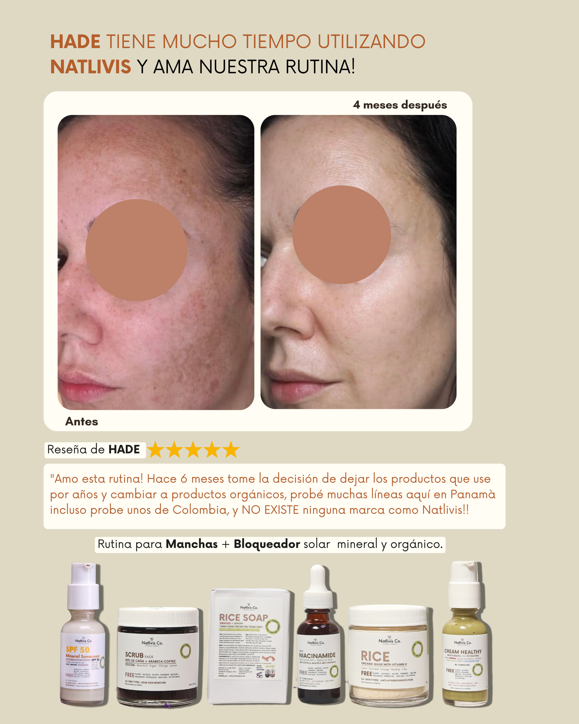 Esta es nuestra rutina completa para manchas e irritaciones en la piel, si presentas manchas en la piel esta rutina diaria es adecuada para ti, es la indicada para ayudarte a regenerar tu piel y mantenerla sana de manera orgánica sin componentes químicos tóxico que empeoran tu piel.
