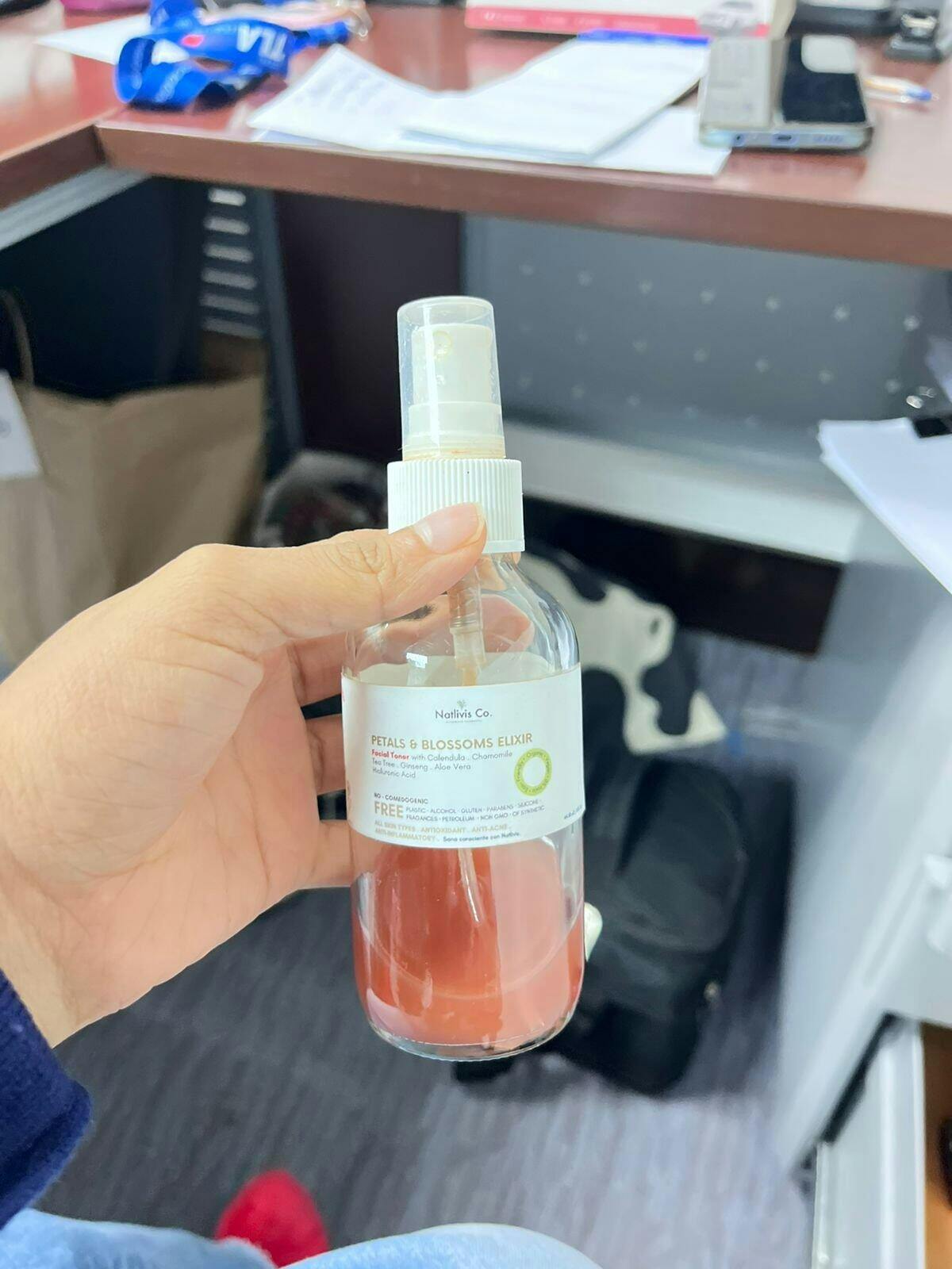 necesitas refrescar tu rostro pero no puedes lavarlo, puedes aplicar un poco de tónico y esto ayudaría a que tu piel se sienta mejor. Petals & Blossoms Elixir es humectante, ayudará a mantener la humedad en tu piel.